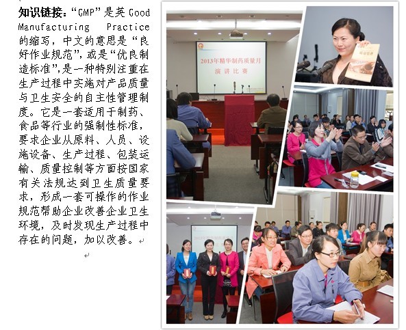 在第十次“質(zhì)量月”活動(dòng)中,精華制藥于10月25日,開展了GMP自檢活動(dòng)和以“質(zhì)量締造品牌,品牌提升效益”為主題的演講比賽。 質(zhì)量月在全公司范圍內(nèi)GMP自檢中拉開序幕,檢查由該公司副總經(jīng)理周云中帶領(lǐng)各部門負(fù)責(zé)人進(jìn)行,發(fā)現(xiàn)問題,限期整改,并要求責(zé)任部門舉一反三提升管理?!百|(zhì)量締造品牌,品牌提升效益”的演講比賽,將質(zhì)量月的活動(dòng)推向了高潮,通過演講,選手們聲情并茂地圍繞質(zhì)量月主題講述自身工作體會(huì)和心得,抒發(fā)著責(zé)任與質(zhì)量、品牌之間的聯(lián)系,小小的比賽展現(xiàn)了企業(yè)員工質(zhì)量管理水平和服務(wù)意識(shí)的進(jìn)步。經(jīng)過激烈角逐,通過評委的綜合打分,最終評出一、二、三等獎(jiǎng)共8名,優(yōu)秀獎(jiǎng)12名。 該公司堅(jiān)持不斷的質(zhì)量月活動(dòng),大大提高了員工的質(zhì)量意識(shí),增強(qiáng)了員工的凝聚力。在全體員工共同努力下本次“質(zhì)量月”活動(dòng)圓滿落下了帷幕。(精華制藥供稿)
