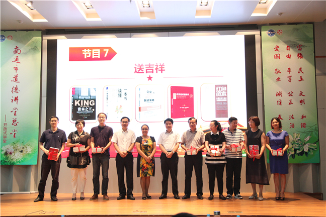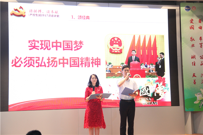 本次活動圍繞“誦經(jīng)典”“學模范”“展風采”“話廉潔”“觀情景劇”“談感悟”“送吉祥”“唱歌曲”八個環(huán)節(jié)開展。詩朗誦《實干才能夢想成真》重溫了習總書記提出的“中國夢”,堅定了大家在平凡崗位上創(chuàng)造不平凡的信心;江天化學吳松華、精華集團朱玉娟兩位同志的先進事跡讓大家在身邊人、身邊事中找到感動;情景劇《春風里的故事》讓大家在忍俊不禁中體味到資產(chǎn)管理一線員工的不易和他們迎難而上的信心;一曲《真心英雄》展現(xiàn)出了集團職工團結(jié)向上的蓬勃朝氣,也將活動推向高潮。在“送吉祥”環(huán)節(jié),集團領導將精心挑選的《投資最重要的事》等金融書籍贈予各投資企業(yè)代表,勉勵他們加強學習,不斷創(chuàng)新,用拼搏和奉獻實現(xiàn)集團的跨越發(fā)展。