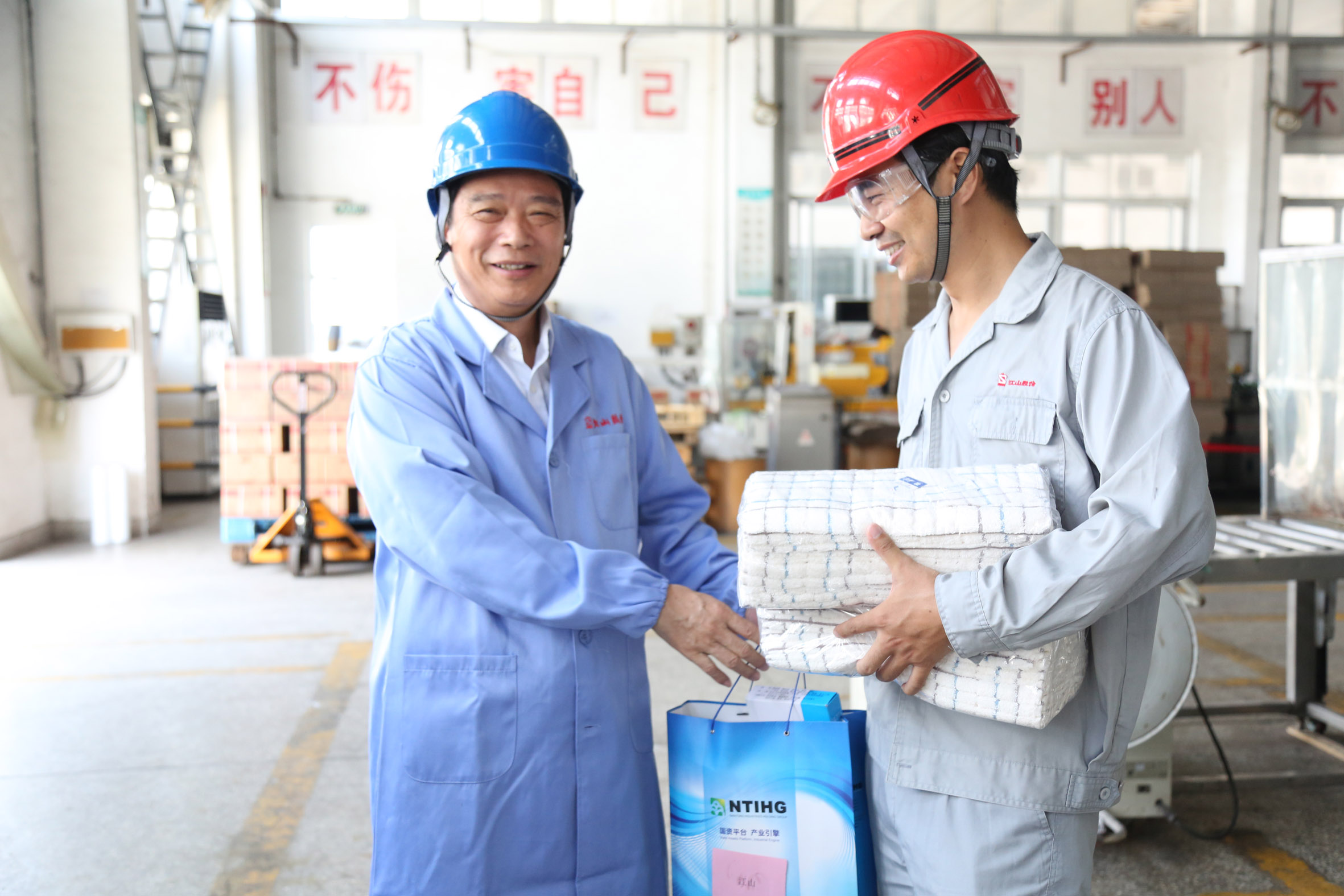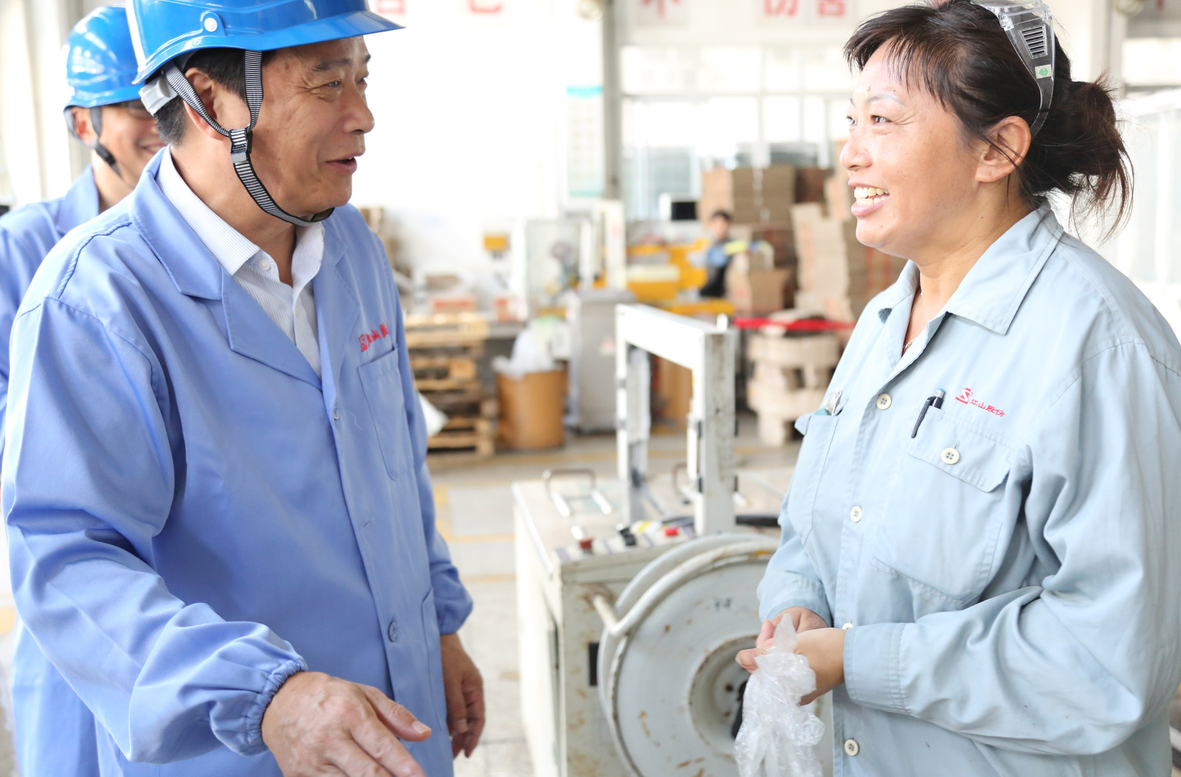 在制劑包裝廠房內(nèi),杜董事長與包裝線員工親切交談,高度贊揚公司員工不畏高溫、堅守一線的精神,叮囑大家在高溫季節(jié)更要注意安全生產(chǎn),做好防暑降溫工作,并向大家送上了高溫慰問品。