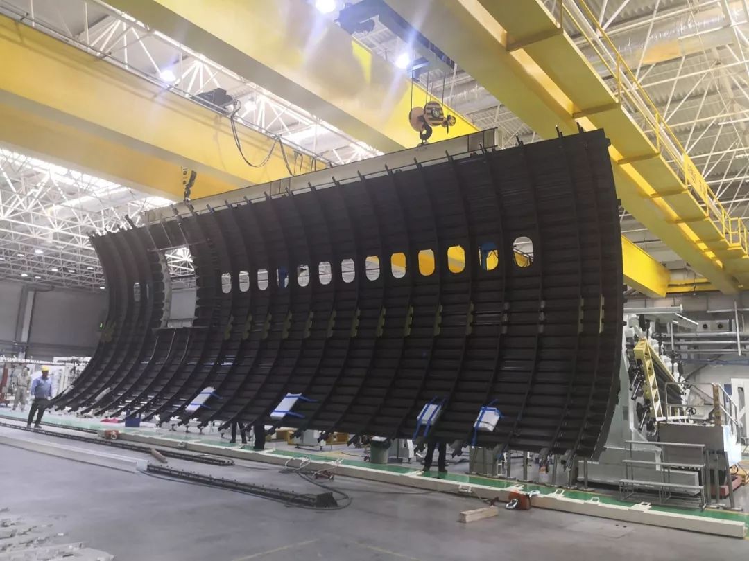 航空工業(yè)復(fù)材助力中國(guó)商飛 CR929項(xiàng)目 復(fù)合材料前機(jī)身攻關(guān)全尺寸筒段順利總裝下線