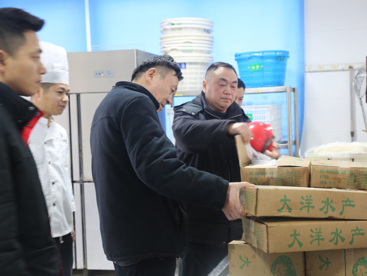 薛總首先檢查了食堂春節(jié)期間食品準(zhǔn)備和食堂安全工作。要求后勤進(jìn)一步完善節(jié)日期間菜品,讓員工節(jié)日期間在公司加班過得舒心,過個穩(wěn)定、和諧的新年。