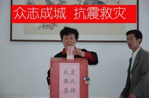 5月12日,四川汶川發(fā)生7.8級大地震。消息傳來后,工貿(mào)公司全體員工非常關(guān)注,災(zāi)情牽動著每一個人的心。14日上午,公司領(lǐng)導(dǎo)班子研究后,決定結(jié)合全市正在開展的“博愛在行動、人道萬人捐”活動發(fā)出倡議:一是倡議全體員工每人捐助一筆善款賑災(zāi);二是鼓勵身體健康的年輕同志自愿獻血。倡議發(fā)出后,公司領(lǐng)導(dǎo)帶頭捐款,各部門員工紛紛慷慨解囊,短短半個小時,就收到了40名員工捐款合計7600元,有8名同志報名參與集體獻血。大家紛紛表達了為災(zāi)區(qū)人民獻出一份愛心、一點力量的心意,同時表示將立足本崗、勤奮工作,以圓滿完成本職工作的實際行動,支援抗震救災(zāi)。 公司還通過短信平臺向所屬投資企業(yè)發(fā)出緊急倡議,號召各企業(yè)發(fā)揚人道主義精神,緊急支援災(zāi)區(qū)同胞。目前,工貿(mào)系統(tǒng)企業(yè)正積極組織廣大職工參與捐款,形成一股抗震救災(zāi)、愛心捐贈的暖流。