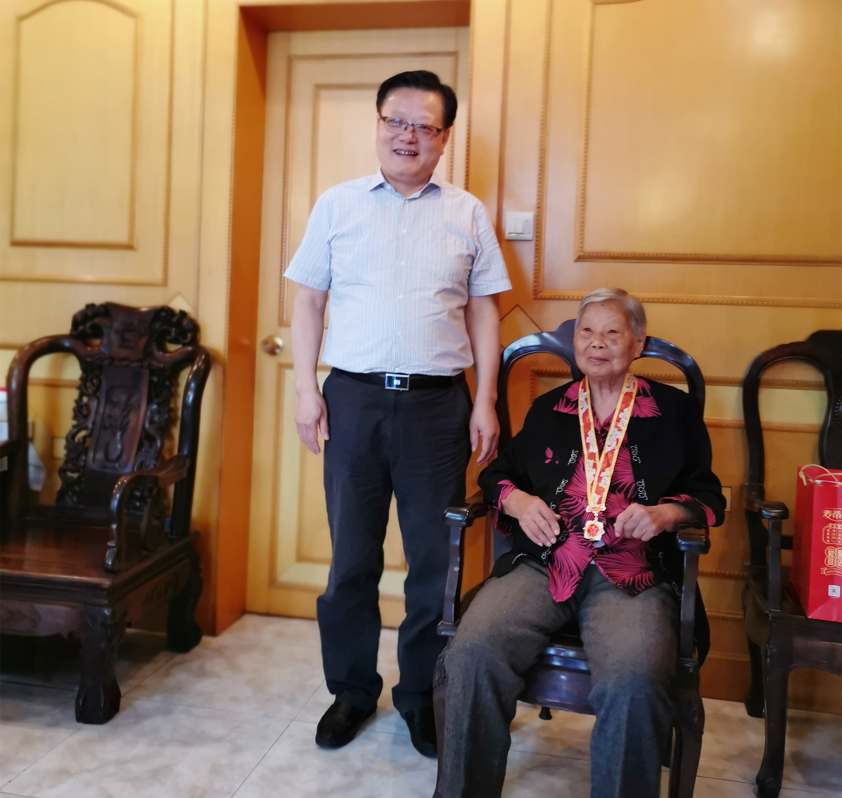 在中華人民共和國成立70周年之際,南通產(chǎn)業(yè)控股集團有限公司黨委開展走訪慰問老干部、老黨員活動,感謝他們?yōu)樾轮袊闪⒑同F(xiàn)代化建設(shè)做出的突出貢獻。 9月26日上午,產(chǎn)控集團黨委書記、董事長杜永朝來到開發(fā)區(qū)世茂公園原振達軸承金志德家,與老人親切握手,促膝長談,詳細詢問他的生活和身體情況。杜永朝感謝金志德同志為黨的事業(yè)和國家的發(fā)展做出的積極貢獻。他說,老一輩共產(chǎn)黨人無私奉獻、敢于擔(dān)當(dāng)?shù)木袷菍氋F的精神財富,也是全體產(chǎn)控人學(xué)習(xí)的榜樣,集團發(fā)展離不開一代又一代人艱苦卓絕的奮斗。