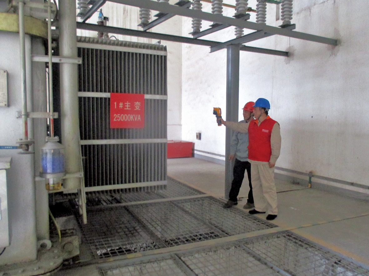 為確保帶電檢測工作的順利進行,杜絕人身、人為事故的發(fā)生,江農(nóng)變電所所長對全站一二次設(shè)備運行情況及日常維護檢修工作進行了介紹。作業(yè)前,公司熱電人員對供電公司試驗人員進行了“帶電檢測工作前”的作業(yè)危險分析及注意事項培訓(xùn),并通過圖例針對各類帶電設(shè)備安全距離進行了分析。 培訓(xùn)結(jié)束后,熱電分廠合理安排工作人員,確定工作負責人和專職監(jiān)護人,明確各級人員工作內(nèi)容及職責,帶領(lǐng)“通電先鋒”服務(wù)隊人員進入現(xiàn)場。大家兵分三路,對1#主變、2#主變、35KV開關(guān)柜、110KVGIS等電氣設(shè)備進行了紅外測溫、局放、油色譜分析等帶電檢測工作,并對全站二次設(shè)備進行了狀態(tài)巡視、采樣檢查、回路檢測等工作,積極排查電氣設(shè)備隱患。