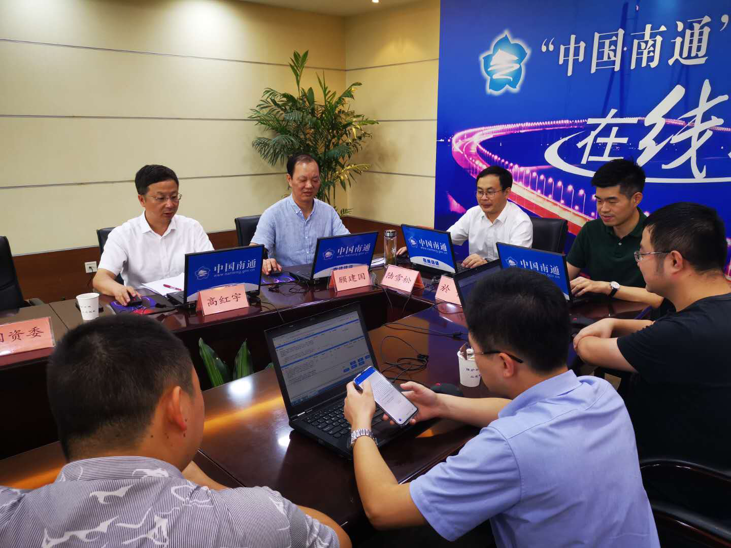 8月20日下午,“中國南通”政府網站在南通市政府409會議室就國企改革發(fā)展情況等群眾關注度較高的熱點話題進行在線訪談,國資委主任陸雪松,沿海集團董事長高紅宇,產控集團副董事長、副總經理、投資公司董事長顧建國等接受了訪談。
