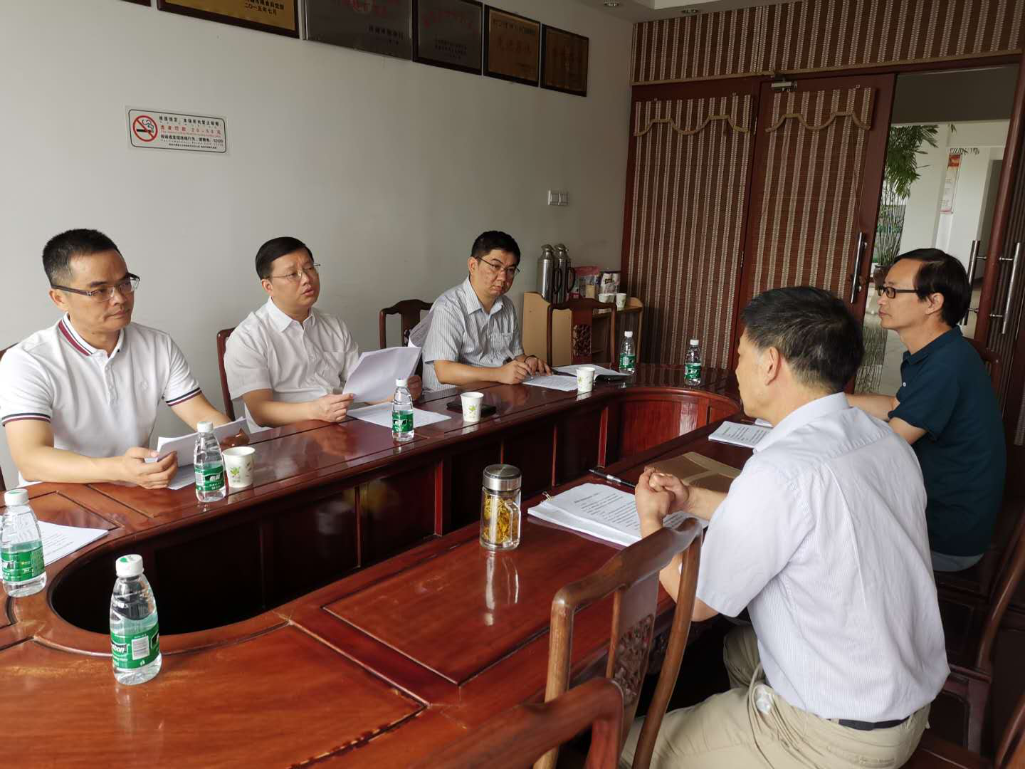 調(diào)研會上,公司總經(jīng)理張明清向領(lǐng)導(dǎo)介紹了公司由來、發(fā)展歷程、資產(chǎn)狀況、人員結(jié)構(gòu)等情況,同時就公司今年經(jīng)濟(jì)目標(biāo)實(shí)現(xiàn)情況、黨建工作完成情況、需解決的矛盾問題一并向領(lǐng)導(dǎo)作了詳細(xì)匯報(bào)。 張劍橋聽取匯報(bào)后,提出如下要求:一是要把政府交辦的事情做好,堅(jiān)持穩(wěn)字當(dāng)頭;二是將政府托管的資產(chǎn)管理好,確保國有資產(chǎn)增值保值;三是管理要嚴(yán),嚴(yán)格按照《公司法》將管理落實(shí)到每個細(xì)節(jié),特別是要嚴(yán)格按“三重一大”制度決策經(jīng)營,增強(qiáng)民主決策力度;四是重視安全生產(chǎn),糧庫工作要到崗到位,落實(shí)主體責(zé)任,細(xì)化責(zé)任到人。 公司將認(rèn)真領(lǐng)會領(lǐng)導(dǎo)講話精神,并落實(shí)到經(jīng)營管理的各個環(huán)節(jié)。 |