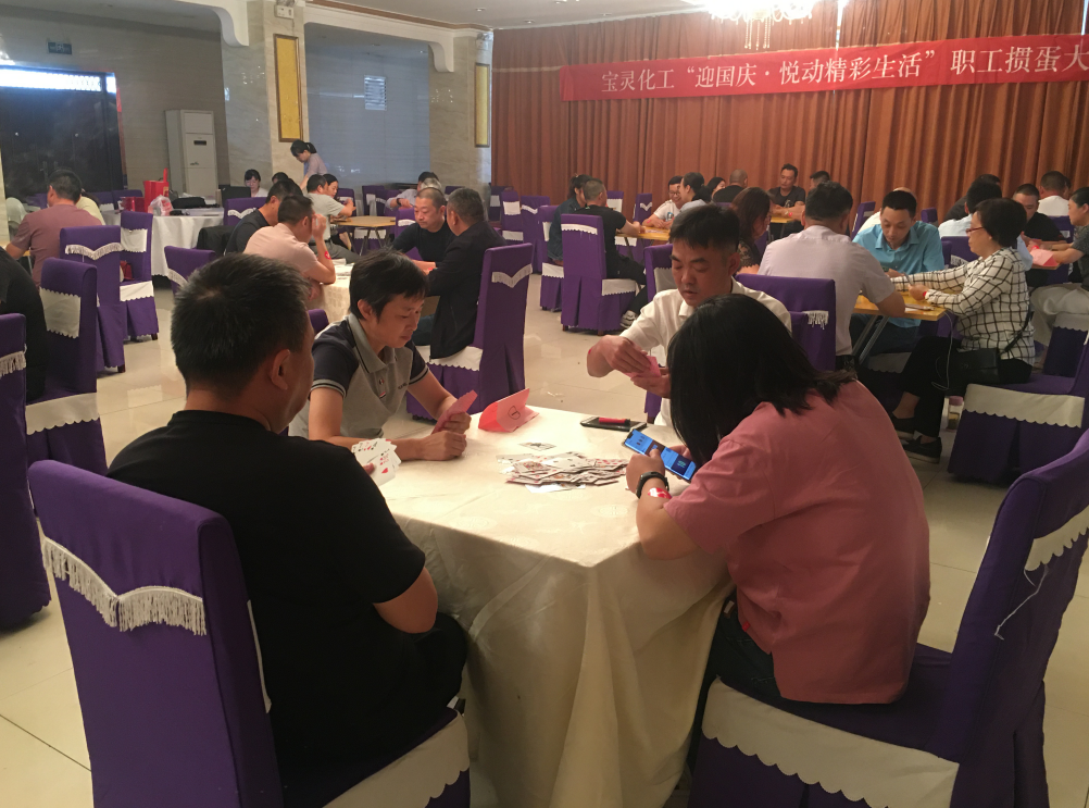 一年一度的國慶、中秋佳節(jié)將至,為慶祝新中國成立71周年,進(jìn)一步提升寶靈群眾性文化活動的廣泛參與性,豐富和活躍職工的業(yè)余文化生活, 經(jīng)公司黨委研究,決定繼續(xù)舉辦寶靈化工“迎國慶·悅動精彩生活”職工摜蛋大賽。各車間、部門高度重視,積極發(fā)動并踴躍報名,共有44名選手參賽。