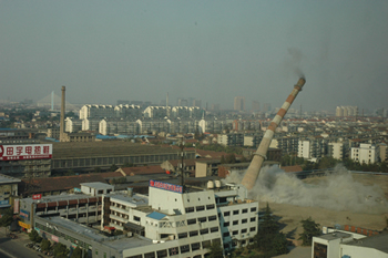 ----為全市實現(xiàn)“十一五”節(jié)能減排目標(biāo)作出貢獻(xiàn) 11月8日下午3點整,隨著一聲悶響,位于南通熱電公司內(nèi)一根有30年歷史的煙囪,順著設(shè)定的東南方向緩緩倒下,這標(biāo)志著西城區(qū)集中供熱項目最后掃尾工作順利完成。 被爆破的煙囪高約80米,建于1980年,是由南通人自己建造的第一座高層煙囪,也是主城區(qū)最高的煙囪。去年,市委、市政府決定關(guān)停南通熱電和江山熱電,統(tǒng)一由大型供電企業(yè)集中供熱、供電。兩家熱電廠的關(guān)停,年可節(jié)約標(biāo)準(zhǔn)煤10萬噸、減排SO2約2800噸,為市區(qū)實現(xiàn)“十一五”節(jié)能減排目標(biāo)作出重大貢獻(xiàn)。