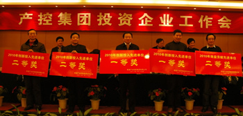 會議表彰了2010年 度目標任務考核先進單位及安全生產先進個人,陳照東董事長希望各投資企業(yè)以先進為榜樣,立足新起點,實現新突破,在新的一年爭先創(chuàng)優(yōu)、勇攀新高。為早日實現集團銷售總額過百億及產業(yè)現代化建設爭做新貢獻。會上,部分企業(yè)黨組織遞交了黨風廉政建設目標管理責任書,控股企業(yè)和未屬地管理企業(yè)經營者遞交了安全生 產責任狀。