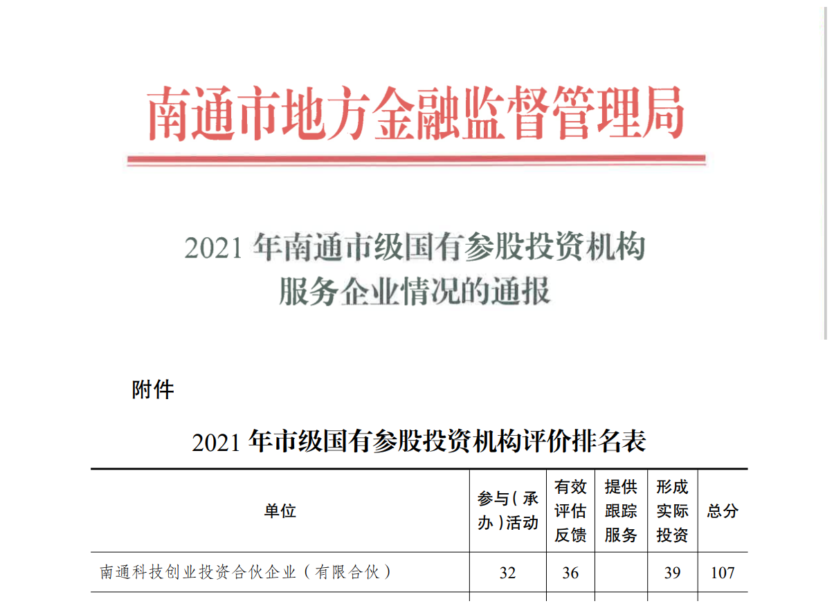 2021年,科創(chuàng)管理圍繞市金融局股權(quán)投融資對(duì)接“六個(gè)一”服務(wù)機(jī)制,積極參加“江海創(chuàng)投行”等股權(quán)投融資對(duì)接活動(dòng),并在活動(dòng)后及時(shí)詳盡反饋、提供后續(xù)跟蹤服務(wù)、提出合理投融資建議,最終形成實(shí)際投資情況??苿?chuàng)管理公司管理的科創(chuàng)基金二期2021年共投資我市科創(chuàng)屬性企業(yè)3家,投資總額5000萬(wàn)元,進(jìn)一步助力了我市創(chuàng)新經(jīng)濟(jì)發(fā)展,在市金融局2021年市級(jí)國(guó)有參股投資機(jī)構(gòu)服務(wù)企業(yè)排名中榮獲第一。 下一步,科創(chuàng)管理將繼續(xù)發(fā)揮國(guó)資創(chuàng)投企業(yè)優(yōu)勢(shì),堅(jiān)持政府引導(dǎo)意圖和市場(chǎng)化運(yùn)作相結(jié)合,圍繞市重點(diǎn)產(chǎn)業(yè)發(fā)展目標(biāo),投向符合市產(chǎn)業(yè)發(fā)展方向的科技成果轉(zhuǎn)化、人才技術(shù)引進(jìn)等創(chuàng)新創(chuàng)業(yè)項(xiàng)目,助力南通市產(chǎn)業(yè)發(fā)展升級(jí)。 |