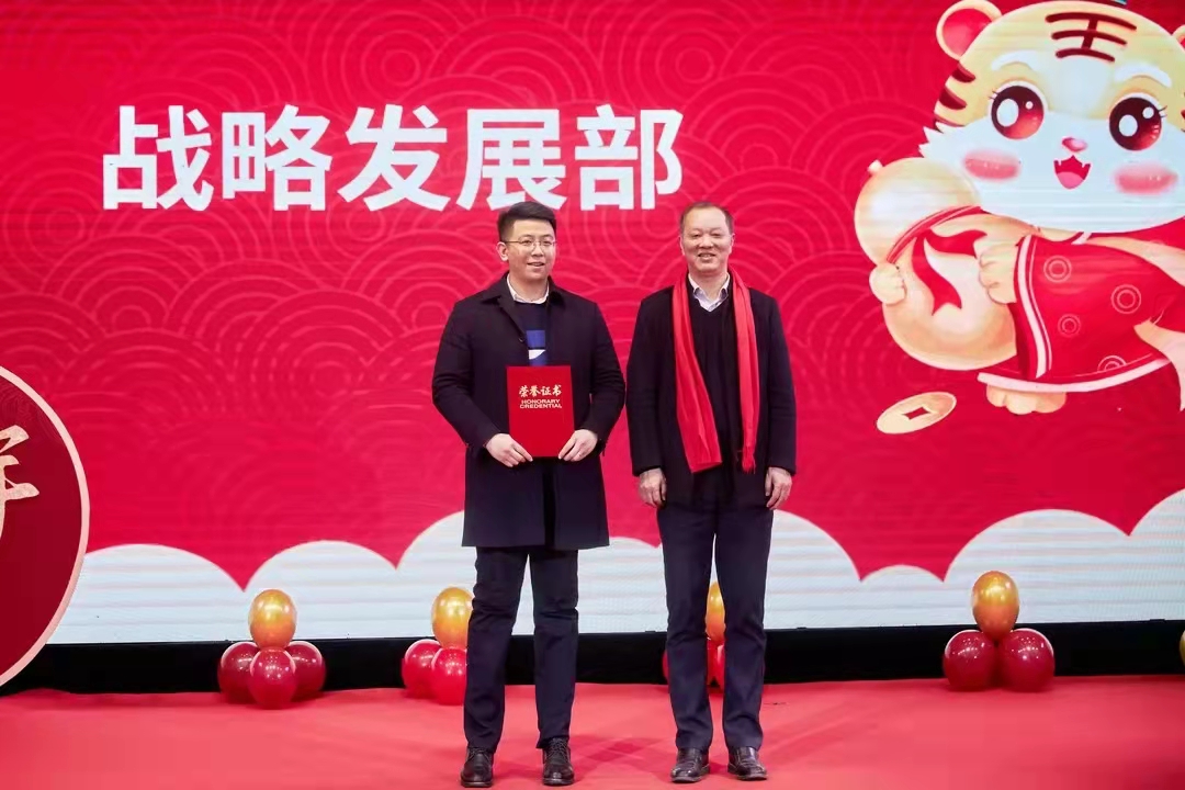 集團(tuán)領(lǐng)導(dǎo)為2021年發(fā)展貢獻(xiàn)獎(jiǎng)獲獎(jiǎng)部門及優(yōu)秀員工頒獎(jiǎng),先進(jìn)部門及員工代表、名校優(yōu)生代表分享了工作感言。