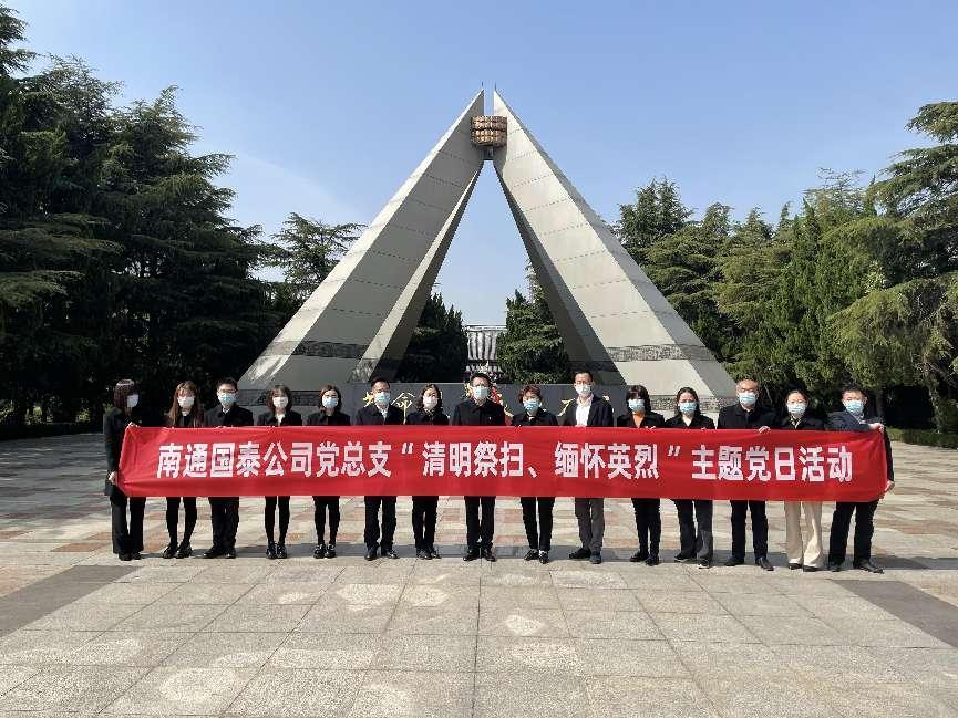 清明將至。為緬懷革命先烈,繼承光榮傳統(tǒng),弘揚愛國主義精神,3月29日下午,國泰公司黨總支開展“清明祭英烈”主題黨日活動。公司全體黨員、管理人員、入黨積極分子參加。 在南通市烈士陵園,全體黨員向烈士默哀,重溫入黨誓詞,向烈士敬獻花籃和鮮花,莊重地三鞠躬,表達了對革命先烈的深切哀悼和無盡的敬仰之情。隨后全體人員懷著對革命烈士的無比崇敬之情參觀了革命烈士紀(jì)念館,學(xué)習(xí)革命英雄事跡,感受革命先烈英勇頑強的戰(zhàn)斗作風(fēng)、堅貞不屈的英雄氣節(jié)、堅韌不拔的革命意志、敢于犧牲的獻身精神。