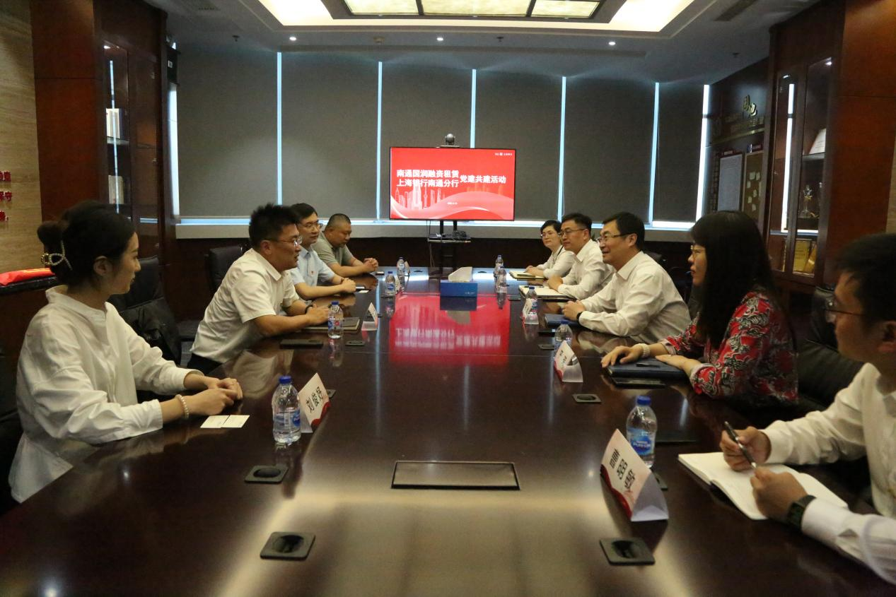 近日,國潤公司黨支部書記、董事長陳大鵬率隊一行四人,與上海銀行南通分行開展“疫路同行,感謝有你”黨建共建授旗專題活動,上海銀行南通分行黨總支書記、行長田烽等人參加了此次活動。