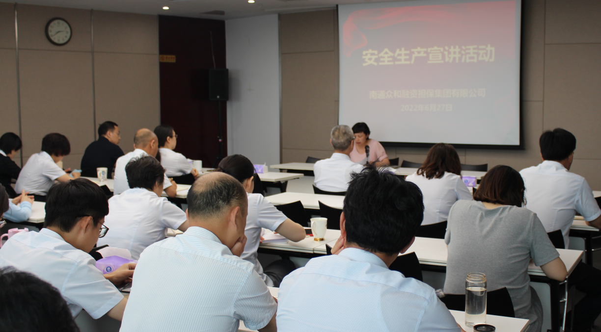 今年6月是全國第21個“安全生產(chǎn)月”,眾和擔保嚴格落實“安全生產(chǎn)月”工作要求,結合公司實際,細化完善活動方案,圍繞“遵守安全生產(chǎn)法,當好第一責任人”活動主題,扎實開展系列宣貫活動,推動安全生產(chǎn)各項工作走深走實。 6月27日下午,眾和擔保召開“安全生產(chǎn)月”宣講活動,公司全體員工及子公司領導班子成員共計40余人參加活動。會上,黨支部書記李瑾傳達了產(chǎn)控集團“安全生產(chǎn)月”專題工作會議精神,提出“提高思想認識、落實制度規(guī)定、切實擔起責任、實現(xiàn)兩個確?!钡墓ぷ饕蟆?