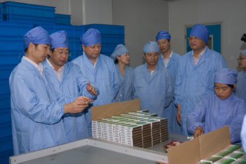 9月12日上午,南通市政府朱晉副市長、陸善平副秘書長一行來到精華制藥集團(tuán)股份有限公司調(diào)研醫(yī)藥產(chǎn)業(yè)發(fā)展工作。在王氏保赤丸生產(chǎn)車間,朱市長詳細(xì)詢問了產(chǎn)品銷售、市 場前景、質(zhì)量控制等方面的情況,他強(qiáng)調(diào),精華制藥集團(tuán)擁有王氏保赤丸、季德勝蛇藥片等一批療效確切的知名產(chǎn)品,企業(yè)要在發(fā)揮品牌影響、加強(qiáng)質(zhì)量管控、擴(kuò)大企業(yè)規(guī)模、促進(jìn)轉(zhuǎn)型升級上下功夫。朱市長要求食品藥品監(jiān)管部門要進(jìn)一步加強(qiáng)服務(wù)力度,在加強(qiáng)藥品質(zhì)量監(jiān)管、保障藥品質(zhì)量安全的同時(shí),發(fā)揮職能優(yōu)勢幫助企業(yè)解決發(fā)展中的突出問題。 南通市食品藥品監(jiān)管局戴輝局長、市政府辦公室孫寶軍副主任陪同調(diào)研,精華制藥朱董事長匯報(bào)了企業(yè)的基本情況和促進(jìn)醫(yī)藥產(chǎn)業(yè)發(fā)展的思路和舉措。