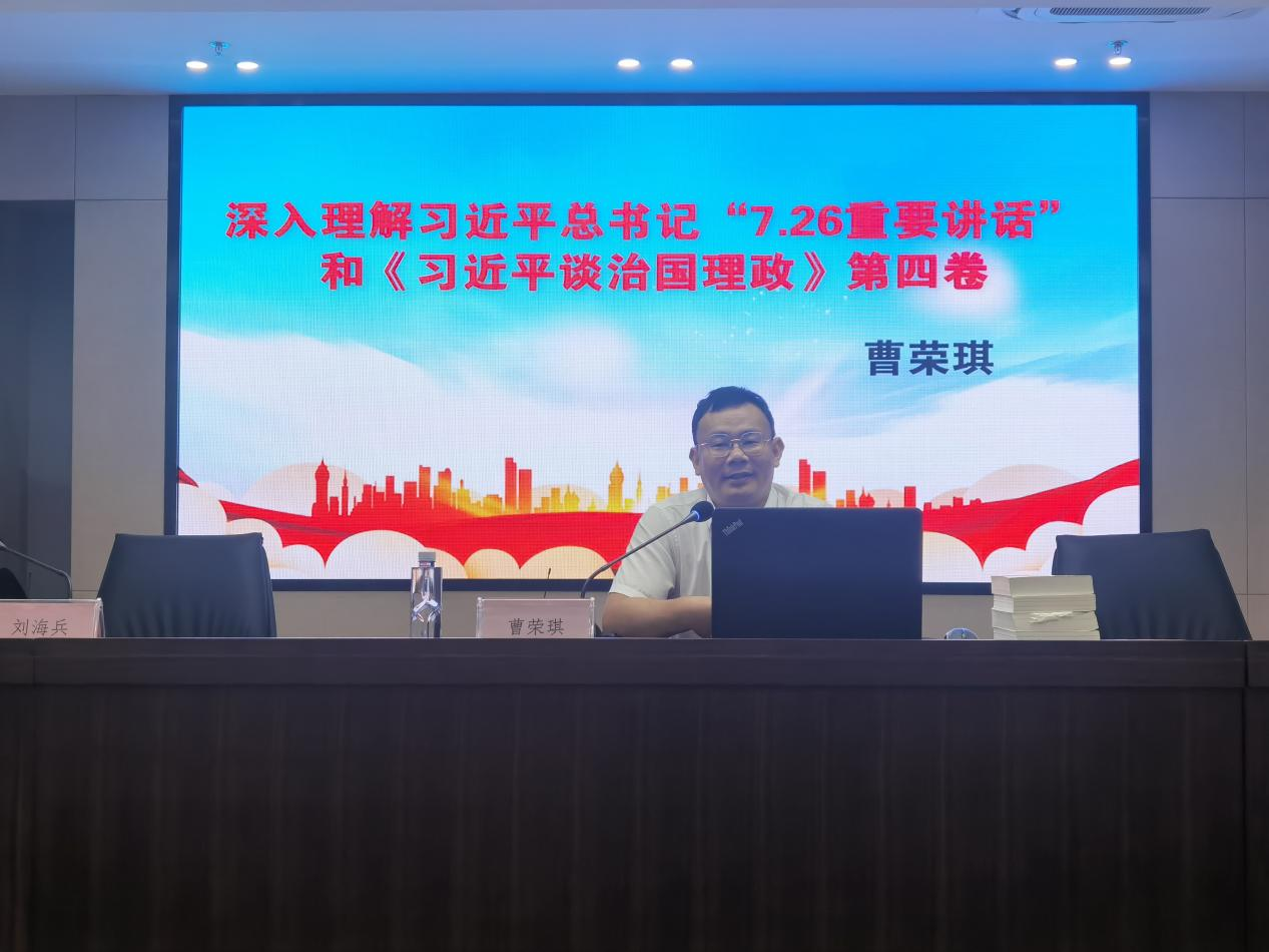 8月30日上午,國融公司召開專題學習會暨主題黨日活動,學習習近平總書記“7.26重要講話”和《習近平談治國理政》第四卷,邀請南通市通州區(qū)委宣傳部副部長、新聞出版局局長曹榮琪作專題授課。學習活動由公司黨委書記、董事長、總經理劉海兵主持,全體員工參加了此次學習。