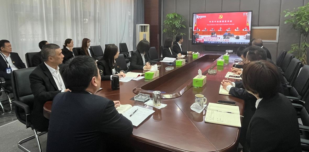 會(huì)議集中觀看了中共中央介紹解讀黨的二十大報(bào)告新聞發(fā)布會(huì),結(jié)合發(fā)布會(huì)所介紹的“新時(shí)代十年的偉大變革、推動(dòng)高質(zhì)量發(fā)展、推進(jìn)法治中國建設(shè)、健全全面從嚴(yán)治黨體系”等內(nèi)容,國泰公司黨總支委員、副總經(jīng)理夏穎為全體黨員、管理人員講授了一堂以“學(xué)習(xí)領(lǐng)會(huì)新理論,奮力譜寫新篇章”為主題的黨課,帶領(lǐng)大家進(jìn)一步領(lǐng)會(huì)黨的二十大報(bào)告內(nèi)容。 通過觀看解讀“輔導(dǎo)”和聆聽黨課的方式,大家對(duì)黨的二十大精神有了進(jìn)一步的理解。黨的二十大報(bào)告主題鮮明、思想深邃、高屋建瓴、氣勢(shì)磅礴,為黨和國家事業(yè)的新發(fā)展描繪了美好前景,指明了前進(jìn)方向。大家表示,將立足工作實(shí)際,認(rèn)真學(xué)習(xí)貫徹落實(shí)黨的二十大精神,踔厲奮發(fā)、勇毅前行,努力開創(chuàng)國泰公司高質(zhì)量轉(zhuǎn)型發(fā)展新局面。
