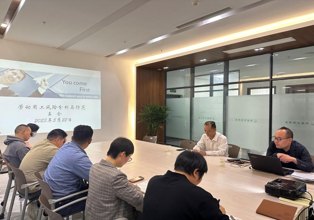 公司邀請(qǐng)北京市惠誠(chéng)(南通)律師事務(wù)所王倉(cāng)律師為主講人,王倉(cāng)律師就勞務(wù)用工法律風(fēng)險(xiǎn)、用工模式風(fēng)險(xiǎn)防范、招聘錄用風(fēng)險(xiǎn)防范等五個(gè)方面進(jìn)行講解,同時(shí)輔以實(shí)際案例,全面講解公司在用工合同中入職、履職、離職管理過(guò)程中可能遭遇的法律風(fēng)險(xiǎn)。最后,王倉(cāng)律師就大家現(xiàn)場(chǎng)提出的法律問(wèn)題一一進(jìn)行了解答。