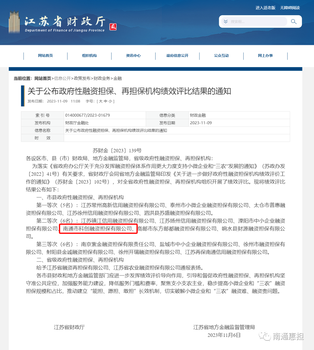 科創(chuàng)融資擔(dān)保躋身全省前十!江蘇省政府性融資擔(dān)保機(jī)構(gòu)績效評比結(jié)果出爐