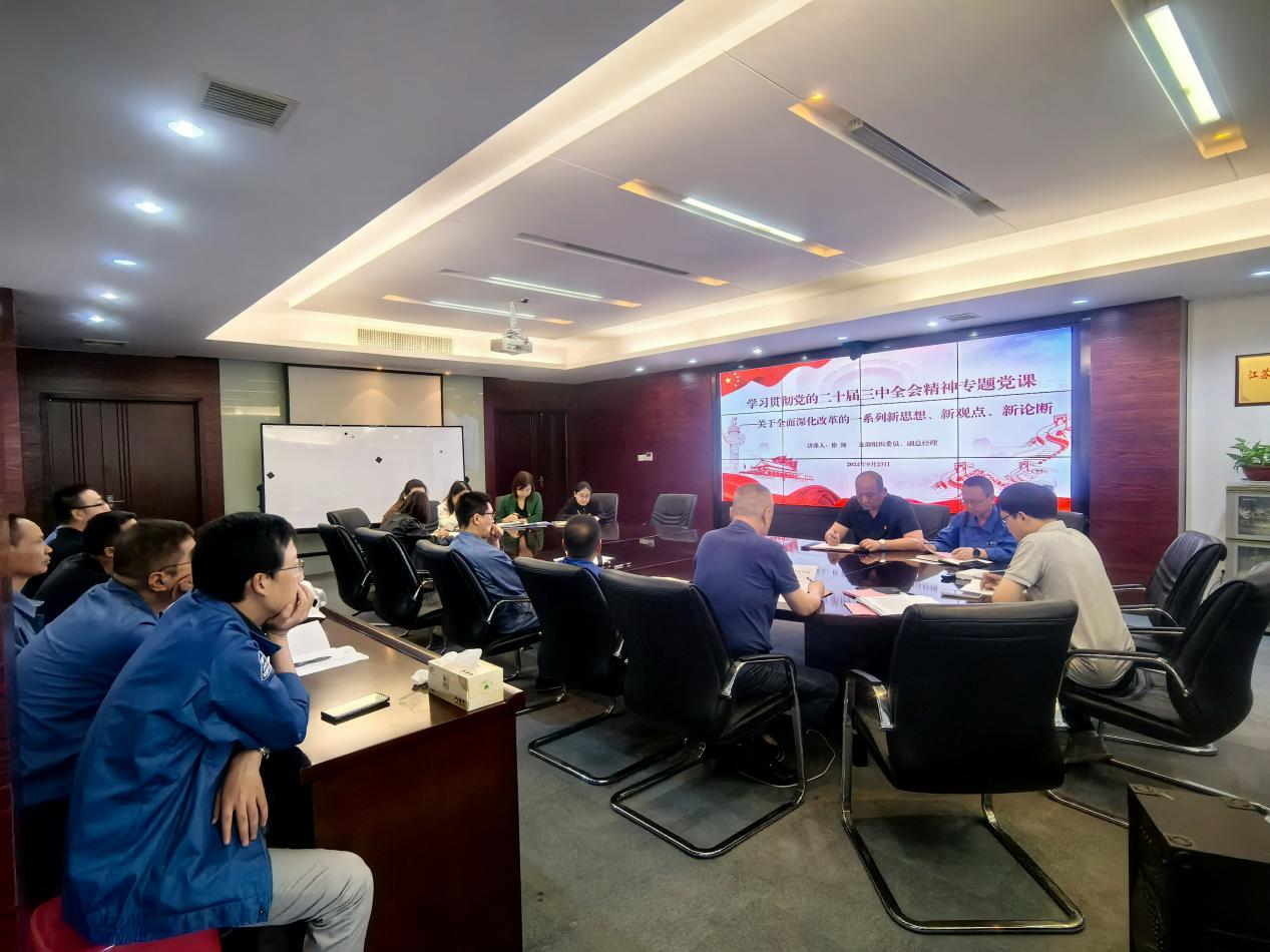 公司支部組織委員、副總經(jīng)理徐翔結(jié)合學(xué)習(xí)貫徹黨的二十屆三中全會精神的有關(guān)工作要求,為全體黨員講授了一堂題為《黨的二十屆三中全會中關(guān)于全面深化改革的一系列新思想、新觀點(diǎn)、新論斷》的專題黨課。黨課從十個方面深入淺出地解讀了關(guān)于黨中央全面推進(jìn)深化改革的重大現(xiàn)實(shí)意義和深遠(yuǎn)歷史意義。