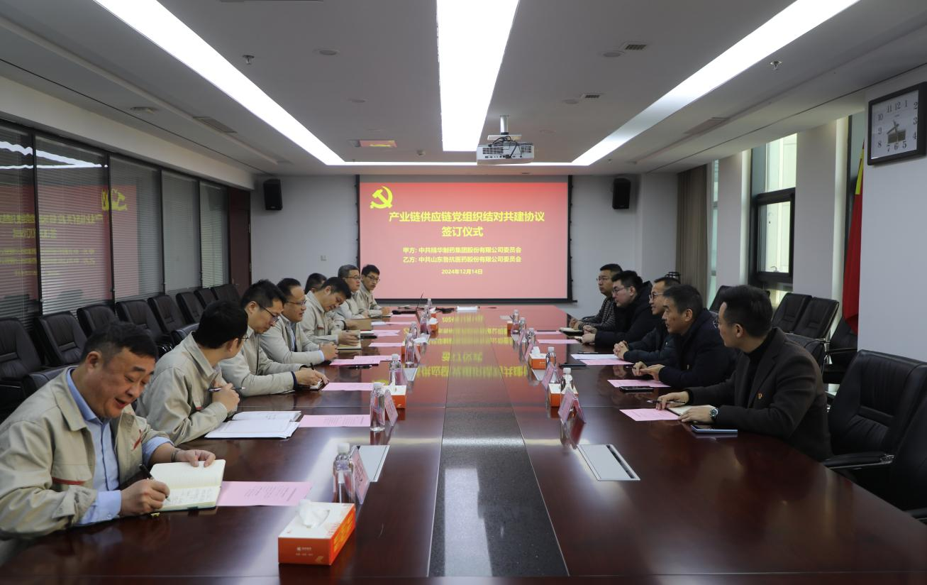 為進(jìn)一步學(xué)習(xí)貫徹黨的二十屆三中全會(huì)精神,創(chuàng)新黨建工作,以“黨建內(nèi)鏈”驅(qū)動(dòng)“產(chǎn)業(yè)外鏈”,不斷激發(fā)基層黨建活力,形成優(yōu)勢(shì)互補(bǔ)、資源共享,共同提高、合作共贏的黨建工作格局,經(jīng)前期溝通,受魯抗醫(yī)藥邀請(qǐng),12月14日,精華制藥集團(tuán)股份有限公司黨委書記、董事長(zhǎng)尹紅宇、集團(tuán)副董事長(zhǎng)、江蘇森萱醫(yī)藥股份有限公司董事長(zhǎng)吳玉祥等一行5人赴山東魯抗醫(yī)藥股份有限公司開展黨建共建活動(dòng)。